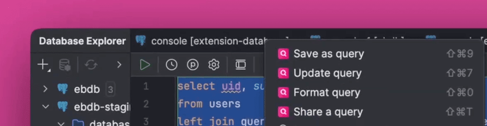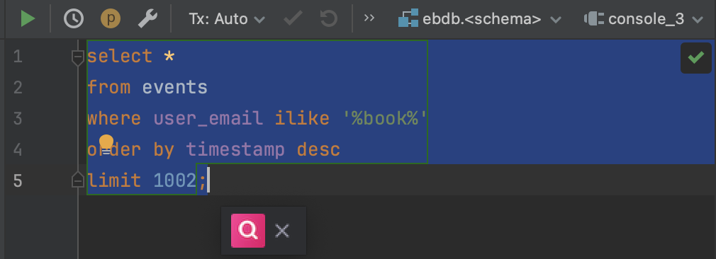 Wrote a 100-line query and forgot a comma? Sherloq now auto-fixes syntax errors, right inside DataGrip. One click. Done. More editors rolling out next month, read more here.Insert Queries Directly into Your Editor